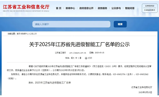 近日江苏省工业和信息化厅公布2023年江苏省智能制造示范工厂名单空羽数位榜上有名