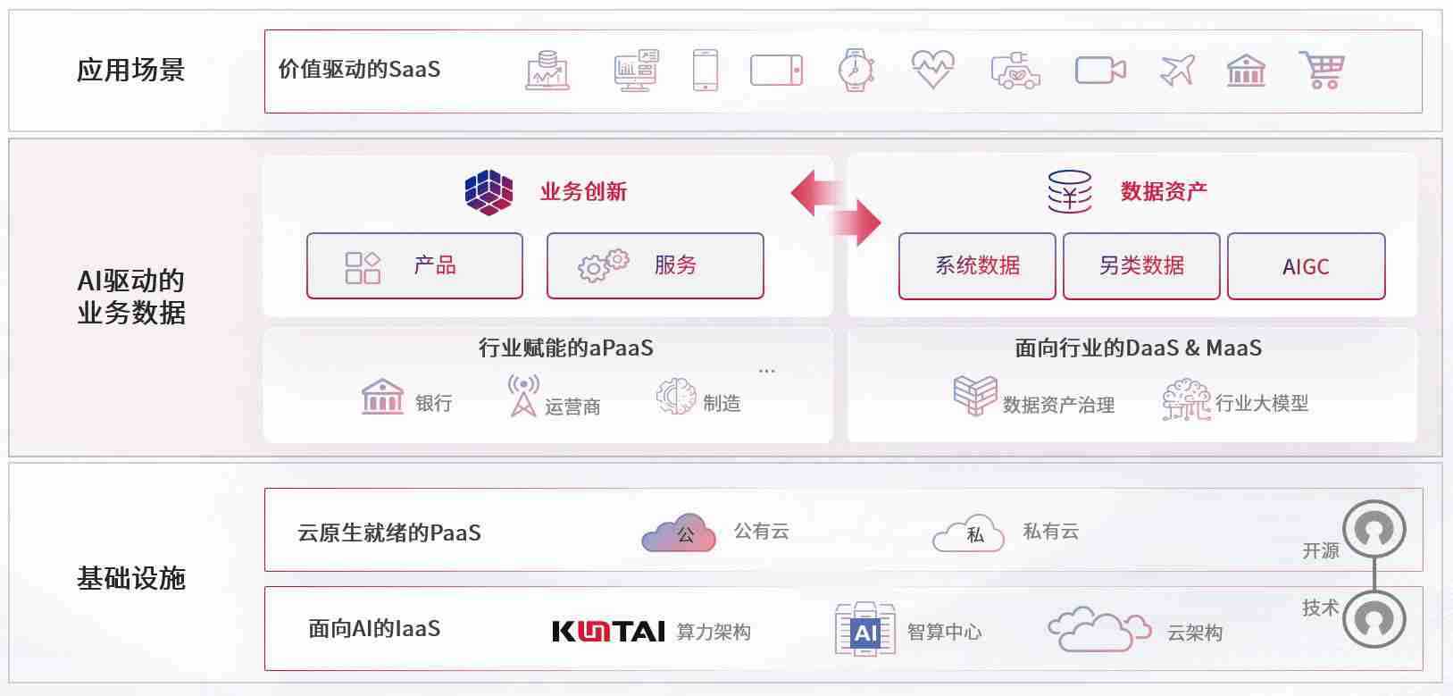 数字时代,,,,围绕企业数字化转型的关键要素,,,,Z6尊龙数码开创性的提出数云融合战略和技术体系框架,,,着力在云原生、、数字原生、、、AI原生和信创产业上架构产品和服务能力,,为处在不同数字化转型阶段的快消零售、、汽车、、金融、、医疗、、、、政企、、、、教育、、、运营商等行业客户提供泛在的敏捷IT能力和融合的数据驱动能力,,,,构建跨界融合创新的数字业务场景和新业务模式,,,助力企业级客户建立面向未来的核心能力和竞争优势,,,全面推动社会的数字化、、、、智能化转型升级。。