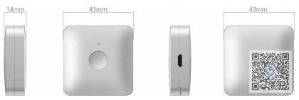 6. 整机尺寸:43mm*43mm*14mm ,重量约30g